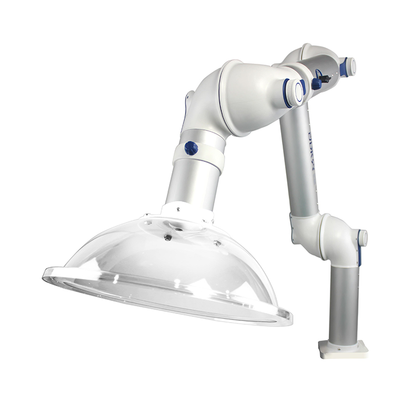 *活動范圍:可以使折疊臂在1.5米半徑內360°旋轉懸停,末端關節(jié)上下端均配備一個軸向360°旋轉功能,做到無死角吸風;
